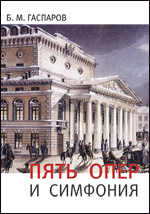 В своей книге «Пять опер и симфония» Гаспаров рассматривает хрестоматийные произведения русской музыки. Представленные в широком контексте отечественной культуры на разных этапах ее развития, они становятся у Гаспарова выразителями постепенных изменений в духовной среде, в господствующих умонастроениях. В традиционно литературоцентричной России интерпретировать музыку как «формообразующую силу культуры» – вот сверхзадача этой книги. Следуя за увлекательным повествованием автора, читатель делает для себя немало интереснейших открытий. И на глазах «забронзовевшая» классика оживает, наполняется новыми смыслами, новыми жизненными токами. Так, развитие персонажей «Руслана и Людмилы» Глинки, постепенно обретающих все более личную интонацию, по Гаспарову, предвещает эпоху 1840-х годов, «отмеченную интроспективностью, самоанализом, уходом в личную жизнь»; «Евгений Онегин» Чайковского обнаруживает недвусмысленное родство с современным ему психологическим романом; тематические совпадения и ассоциации в «Хованщине» вскрывают неожиданные смысловые подтексты (что, по мысли автора, сближает композиционный метод Мусоргского и Вагнера), а распавшийся мир Четвертой симфонии Шостаковича предстает страшноватой пародией на советский роман периода социалистического реализма.