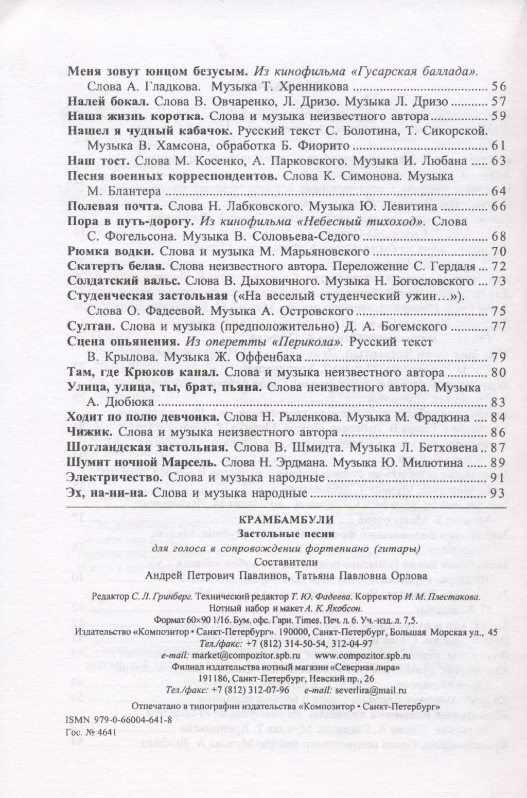 Крамбамбули. Застольные песни для голоса в сопровождении фортепиано (гитары)